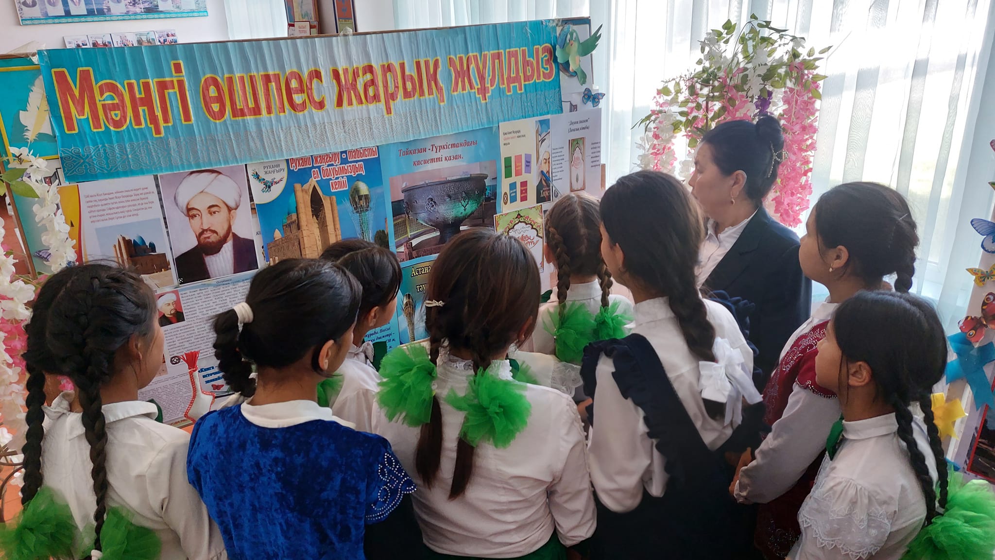 Түркістан облысы. Шардара ауданының адами әлеуетті дамыту бөліміне қарасты Ш.Уәлиханов атындағы жалпы орта мектеп кітапханасында аудандық білім бөлімінің N229 - 11 - 01-01-1569 санды хатын орындау мақсатында 2023 жылдың 12 сәуір мен 12мамыр аралығында мектеп кітапханаларда "Мерейтой жылында" атты кітап айлығында өтуде. "Оқуға құштар мектеп"жобасы аясында оқырмандардың кітап оқуға сүйіспеншілігін арттыру,2023 жылы аталып өтетін Қазақстан ақын жазушыларының шығармаларын кеңінен насихаттау мақсатында ақын Қожа Ахмет Яссауидің туғанына 930жылдығына орай "Қожа Ахмет Яссауи - рухани тұлға" атты тарихи сағат өтті.